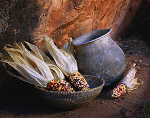 An old timer in the area stumbled across these artifacts long before the Antiquities Act prohibited collecting, and he allowed me to create this still life with some Indian corn I had grown from seed I acquired through Native Seed Search.